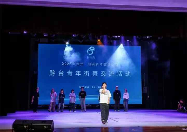 別以爲這只是一場“蹦迪大會”,現場藏着的細節比街舞動作還戳心。背景板上畫着黃果樹瀑布和阿里山,選手們的衣服上繡着“黔臺同頻”的小字,連伴舞的小朋友都知道“左邊是貴州的山,右邊是臺灣的海,跳起來就是一起的風景”。有個臺灣女生說:以前總覺得貴州很遠,現在跳完舞才發現,我們喜歡的音樂、熱愛的節奏,比高鐵還近。這話一出來,現場的掌聲比剛纔喊“炸場”還響亮——畢竟,比起“距離”,年輕人更認“同頻”,比起“陌生”,街舞更懂“共鳴”。