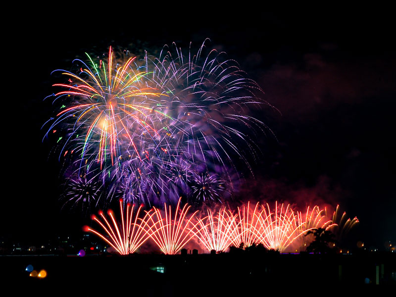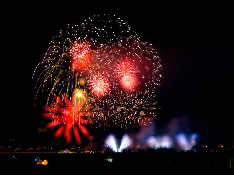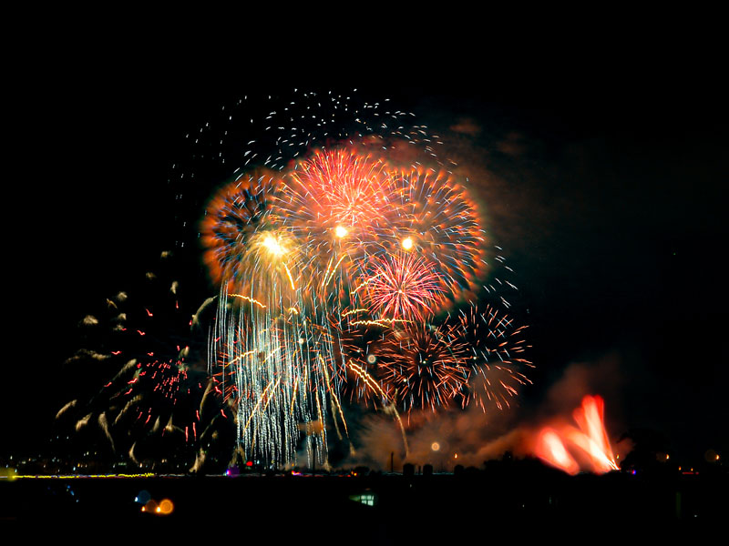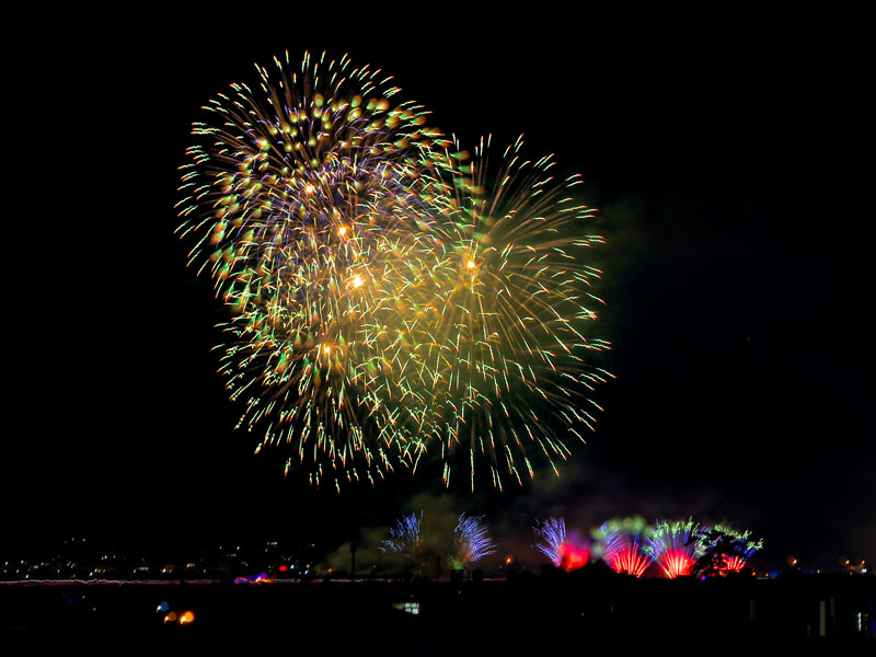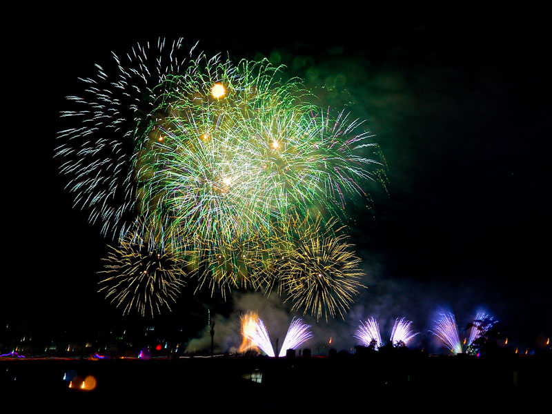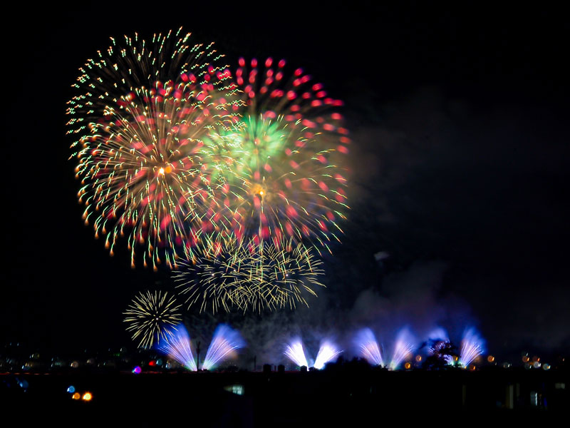 國慶焰火則於晚上8時開始施放,南投縣政府以玉山、日月潭、濁水溪為視覺主軸,打造「七彩水墨煙火」。完整煙火秀長達40分鐘共4萬3000發,為近10年來最盛大的國慶煙火,共吸引約28萬人到場。