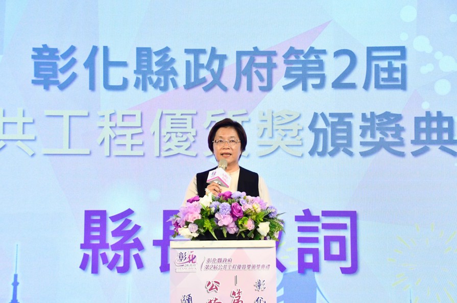 【記者蔡鳯墨/彰化報導】彰化縣政府15日上午於縣府1樓中庭舉行第二屆「彰化縣政府公共工程優質獎」頒獎典禮,縣長王惠美親自頒獎表揚優良建設團隊。王縣長表示,本次共有35件參獎,入圍有25件,得獎的有土木、水利、建築設施及文化資產等4大類19件,其中3件特優,7件優等,9件佳作,恭喜所有脫穎而出的得獎者。也感謝各項優質公共建設的幕後英雄,藉由提升公共工程施工品質,促進廠商良性競爭,改善生活環境,彰顯彰化公共工程「優質淬鍊‧彰耀永傳」的精神。