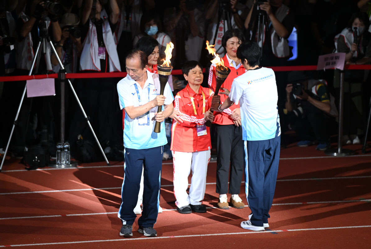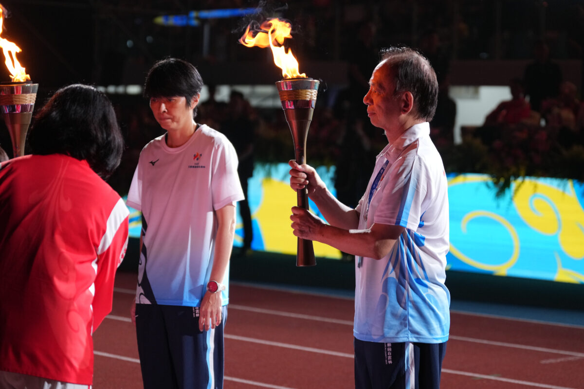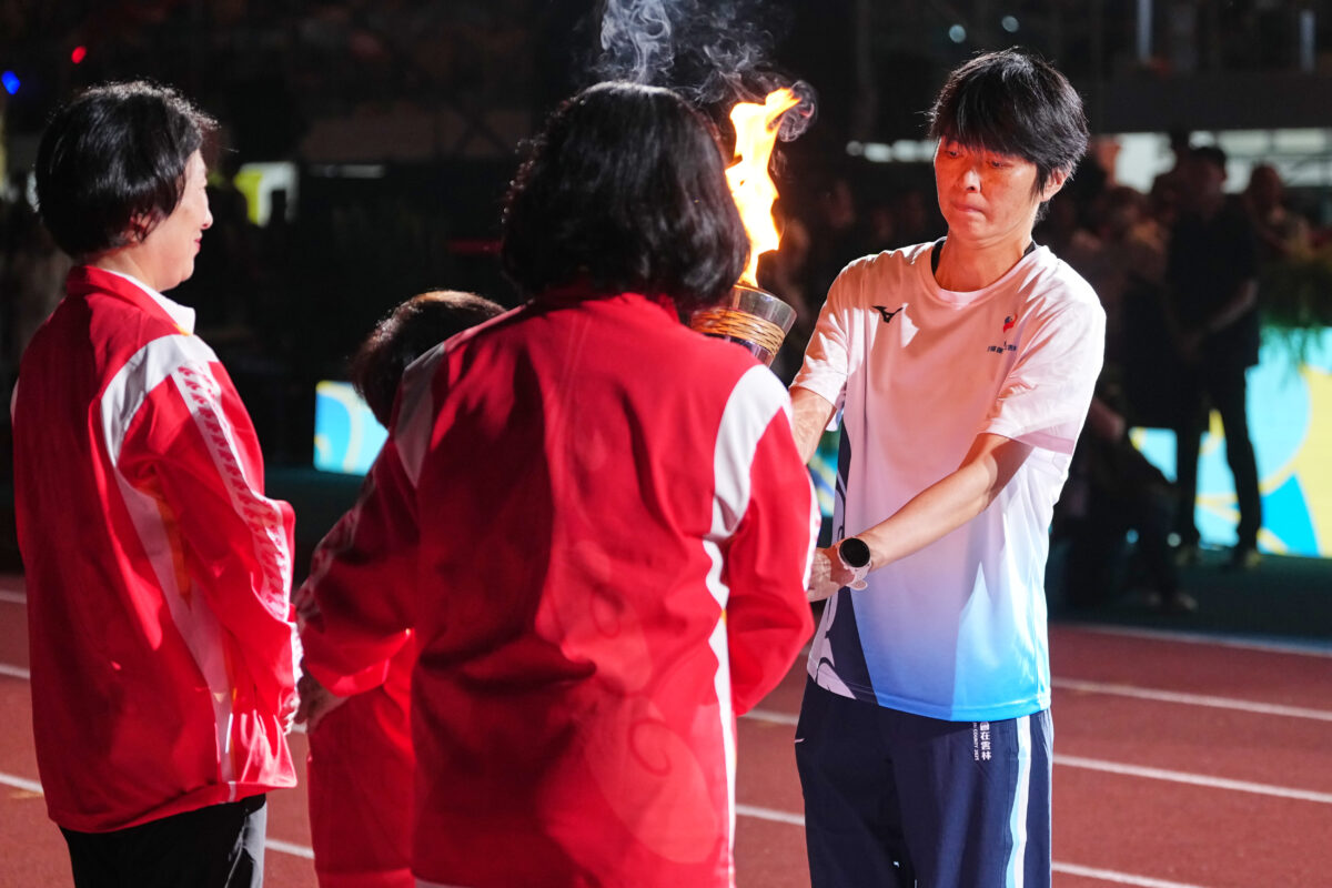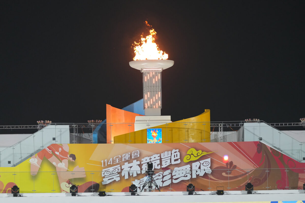 聖火由張麗善縣長、饒慶鈴縣長、行善家陳樹菊女士及老中青3代運動員接續傳遞,不僅象徵運動精神的傳承,更符應雲林縣推動品德教育的精神。聖火首先由曾任羽球國家代表隊總教練現齡75歲的程峻彥教練,及目前擔任斗南高中教師兼田徑隊教練廖佩苓老師將聖火帶進會場,雲林西螺在臺灣羽壇稱霸十來年,有「西螺幫」之稱,亦有臺灣「羽球王國」美名,程教練功不可,廖老師曾在96、98、100年全運會1500公尺三連霸,他們將聖火傳給2位縣長及陳樹菊,再交給下一棒;第二棒由國家訓練中心田徑教練林進福及軟網國手鄭竹玲教練接續,林教練及鄭教練本身不僅為台灣獲得多面金牌,更培育許多台灣優秀選手;最後一棒由年輕選手棒球新星鍾亦恩及武術精靈林千禧擔綱,亦恩在2025-U18世界棒球錦標賽第三名並已獲得中華職棒選秀會樂天桃猿隊第一指名,千禧剛在成都世大運女子武術長拳銅牌,他們是台灣新一代的運動希望。聖火最後在亦恩及千禧的共同引燃下,燃起熊熊聖火!燦爛的煙火隨之同時綻放,!