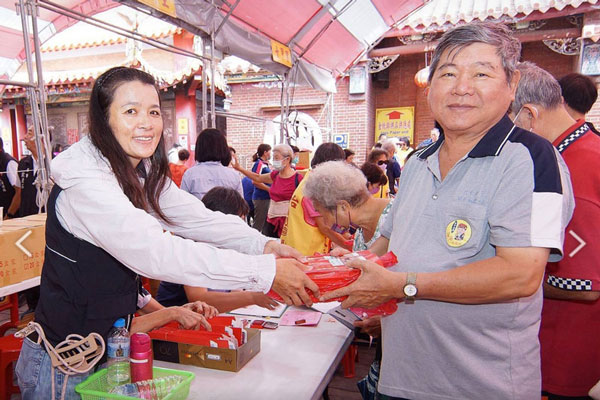 董事長何敏誠表示「家有一老、如有一寶」,受惠醫療科技與日俱增,長青長者增加速度驚人,樂成宮發放重陽敬老禮金已經44年,金額與人數每年增加,今年長者成長超過357多人,於樂成宮廟埕發放重陽敬老金,同時也共邀轄區八里長青長輩一同參加,發放標準樂成宮轄區八里(旱溪、樂成、泉源、干城、東門、東信、十甲、東英)70-79歲4,289人每人1,000元、80-89歲1,281人每人2,000元、90-99歲250人每人3,600元、7位百歲人瑞每人12,000元、每位長者並送代表長壽的平安麵線一包。今年人數成長357人,禮金增加396,800元
