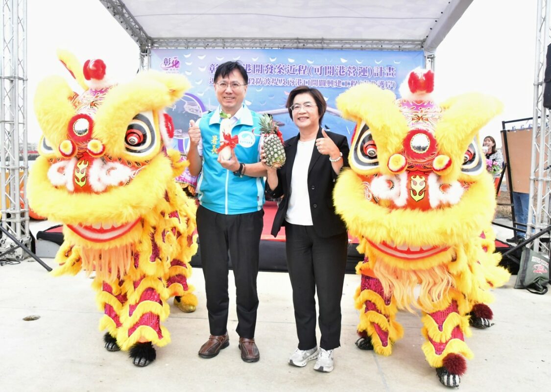 王縣長表示,漁民工作非常辛苦,作業過程中天氣變化無常,因此縣府期望開發彰化漁港,讓漁民作業更加安全。工程啟動的第一階段,主要為防波堤與內港口的興建,也就是「南北護岸」工程,總經費為3.35億元,感謝漁業署補助1.55億元。在議長謝典霖及所有議員支持下,縣府自籌1.8億元,讓工程能夠順利發包,展現中央與地方合作的成果,也實現縣府對漁民的承諾。後續還有第二期工程,預計投入20多億元。未來整體工程完工後,漁港設施完善,將可容納約200艘漁船。