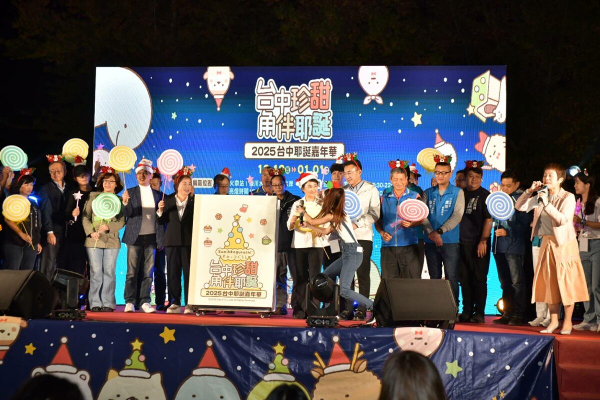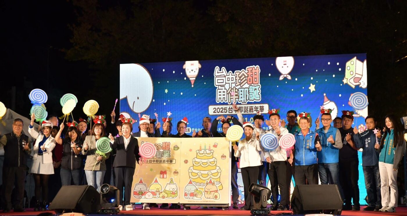 新聞局長欒治誼指出,今年耶誕嘉年華推出三大全新亮點,保證給予市民「珍甜」又難忘的節慶享受;首先閃耀登場是「耶誕珍甜」耶誕樹,是全台唯一穿著手工訂製蛋糕裙的耶誕樹,以具代表性甜點「奶油蛋糕」為靈感,點綴《角落小夥伴》可愛的粉圓角色,設計高達18公尺的絕美樹型;其次是以氣膜裝置亮相台中耶誕的日本人氣角色IP《角落小夥伴》,5隻角色一起亮相,展區還有隱藏版的角落小夥伴,歡迎大家展開尋找小夥伴的溫馨旅程。
