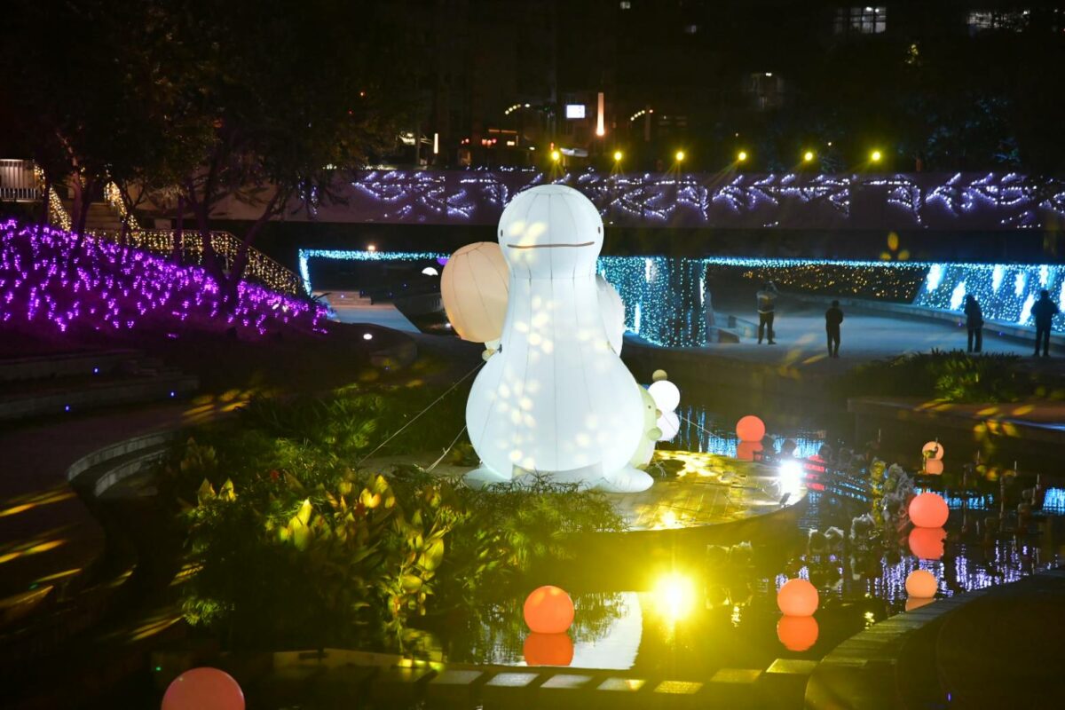 此外,呼籲民眾千萬別錯過柳川水舞台,高達5公尺的《角落小夥伴》大型氣膜,將搭配主題水舞燈光秀,每日下午17點30分至21點30分,每隔半小時展演一場。