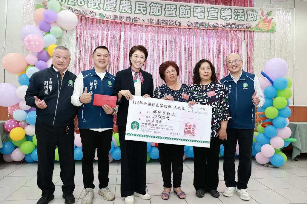 而在水里農會時,許縣長則公開頒獎表揚水里鄉郡坑家政班,榮獲農業部114年特色家政班「人之美」殊榮,家政班更成立地方首支女性鑼鼓隊,將民間藝術融入家政教育,充分展現農會在婦女培力與社區發展上的深厚能量。