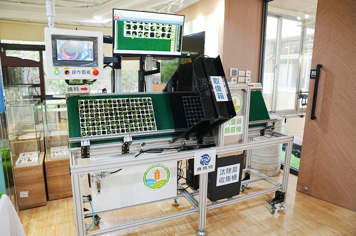 育苗場每日需處理大量穴盤苗,傳統人工挑苗作業耗時費力,且易因人員疲勞或經驗差異,影響出貨品質一致性,成為育苗產業長期缺工痛點。為回應產業需求,研發「穴盤苗株篩選機」,導入影像辨識與自動化控制技術,提升育苗作業效率與品質穩定度。該系統鎖定苗齡10至13天之穴盤苗,透過影像辨識即時判讀苗株生長狀態,自動剔除缺株與弱勢苗,並結合PLC控制,將作業流程優化為連續輸送。以128孔穴盤為例,每盤僅需30秒即可完成篩選,平均較人工目視篩選效率快3倍,辨識準確率達97%以上,及可提早1週作業。本技術成功將過往仰賴師傅經驗的人工判斷,轉化為可複製的數位參數,確保出貨苗株整齊均一,提升商品價值。目前已應用於青花菜及甘藍育苗,後續將拓展至花卉場域,並已取得新型專利及與業者簽訂技術移轉,助攻產業智慧化升級。