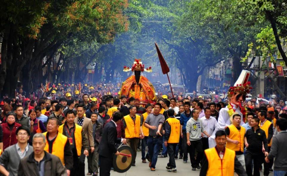 每年安溪城隍的”春巡迎儺”盛會,更是兩岸民俗交流的嘉年華。來自臺灣各地的宗親、信衆組成浩浩蕩蕩的進香團,與祖地的鄉親並肩抬着神輿,踩着熟悉的步伐,穿行在茶鄉的大街小巷。那一刻,熟悉的閩南鄉音,同樣的祭祀禮儀,讓人恍惚間忘記了海峽的存在。