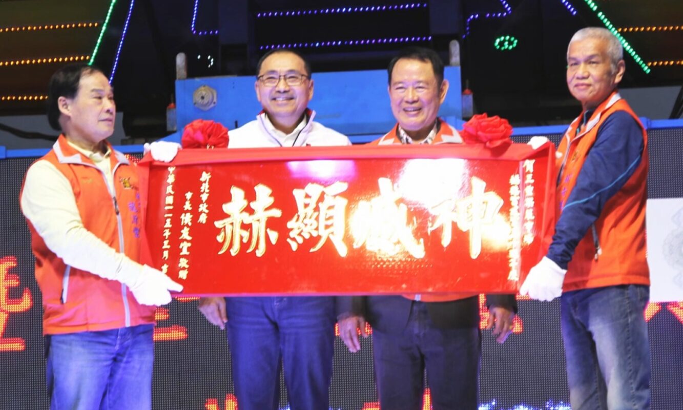 今日(3/15)喜迎建宫 30 週年暨福德正神聖誕千秋,現場平安福宴席開 268 桌,新北市長候友宜先生,親臨現場贈匾誌慶,表彰福德宫長期守護市場攤商,投身社會公益的卓越貢獻,並代表接受福德宫捐赠予「新北市好日子愛心大平台 」新臺幣 20萬元善款,指定為弱勢家庭急難救助;將對土地公的敬意化為守護弱勢的實質力量。