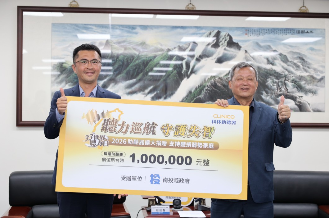 王副縣長指出,南投縣老年人口約占22.8%,屬於超高齡社會,身心障礙人口有3萬3,276人,其中聽覺機能障礙者有5,272人;許多長者聽力受損後較少與人互動,不僅影響生活品質,也容易引發退化及認知的問題,感謝科林公司推動「聽力巡航、守護失智助聽器公益捐贈」活動,除了讓聽力受損的弱勢鄉親恢復正常生活,也幫助年輕人安心工作。