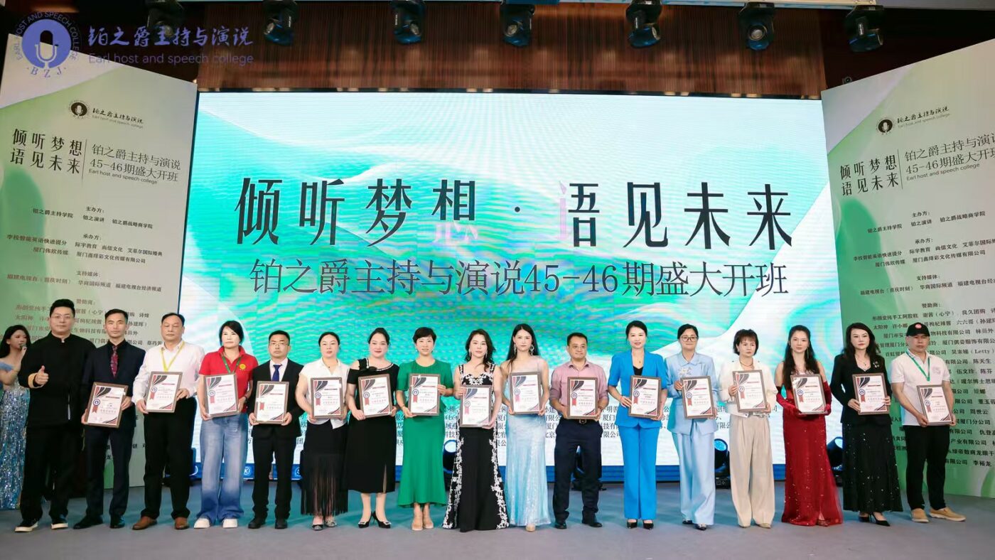 深耕主持教育十三載,堅守育人初心不言悔。秉持作育英才、無私奉獻的創辦人精神,廈門鉑之爵主持學院「傾聽夢想 語見未來」第45~46期開幕式,於4月18日上午八點半在廈門牡丹港都大酒店隆重舉行,誠邀各界人士準時到場、前排就座,共同見證學院十三年育人碩果,感悟創辦人吳序儂的教育情懷與擔當。
